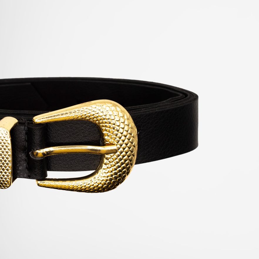 Black Leather Belt With Gold Buckle