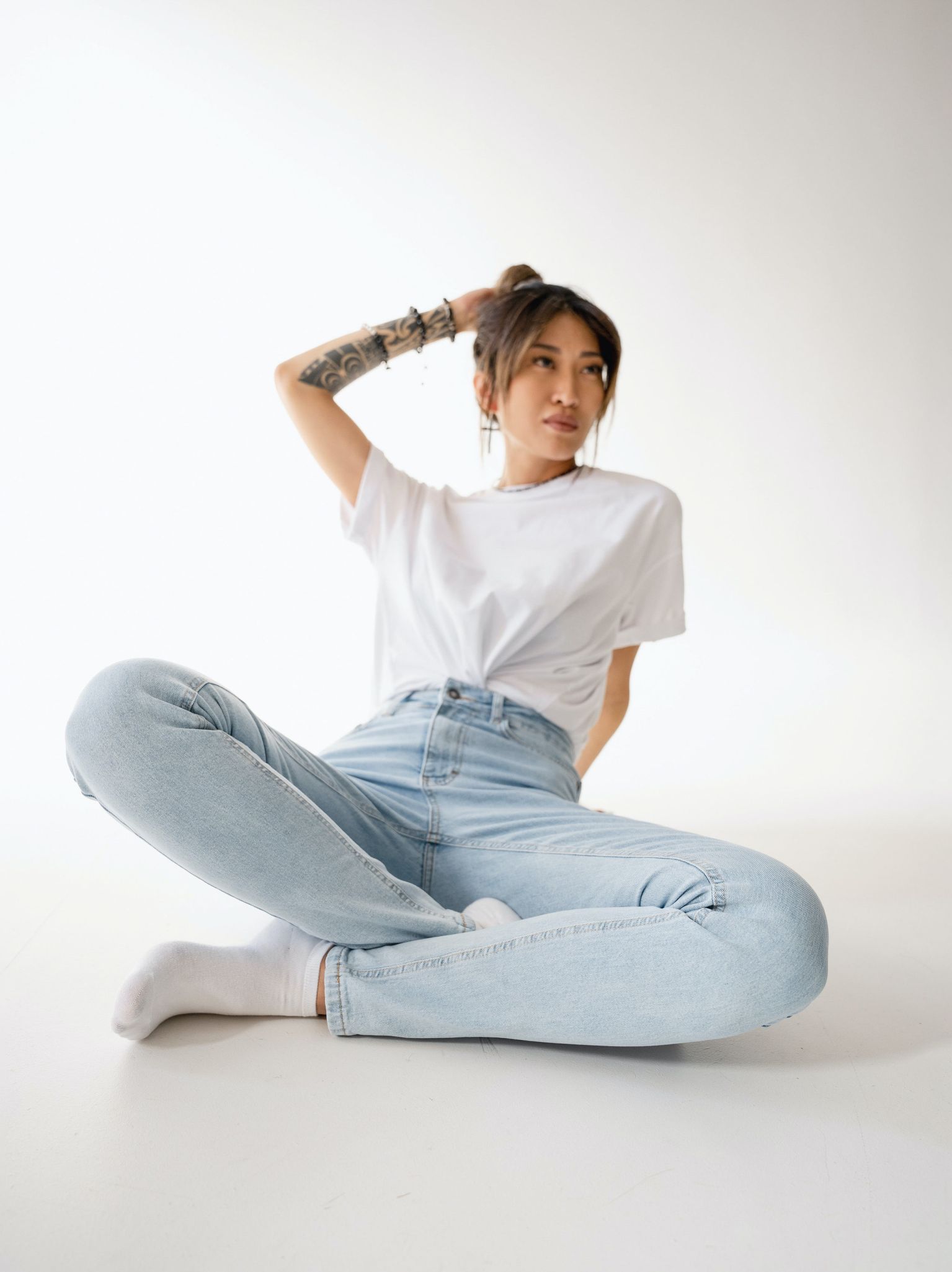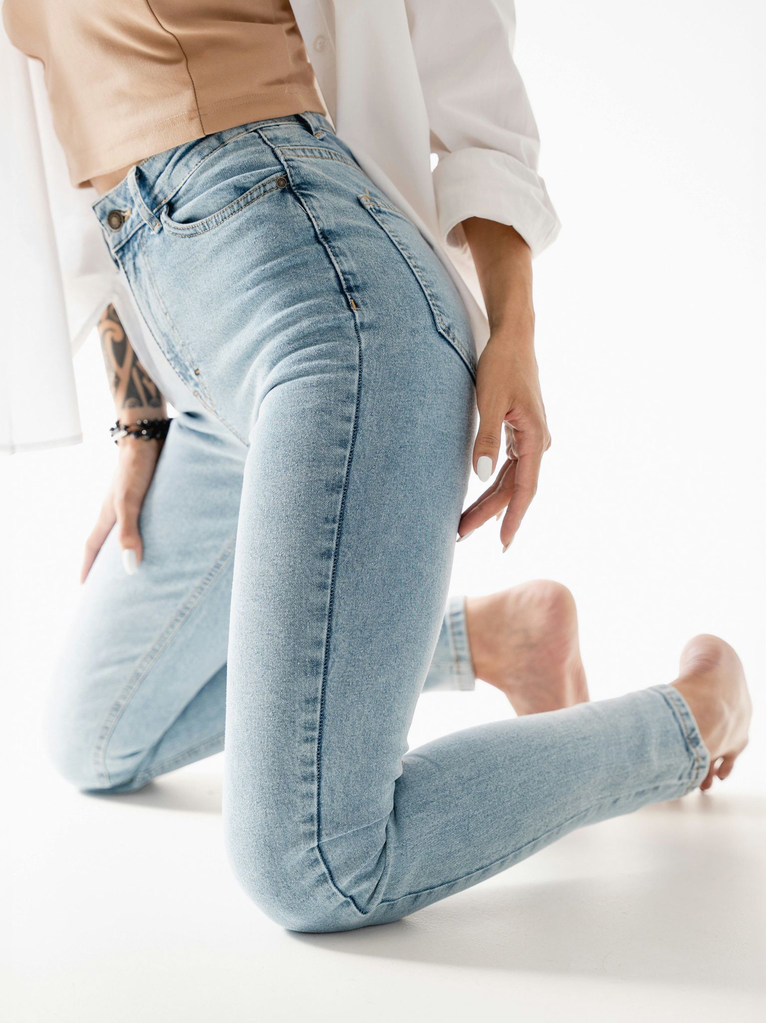 Mid-Waist White Jeans