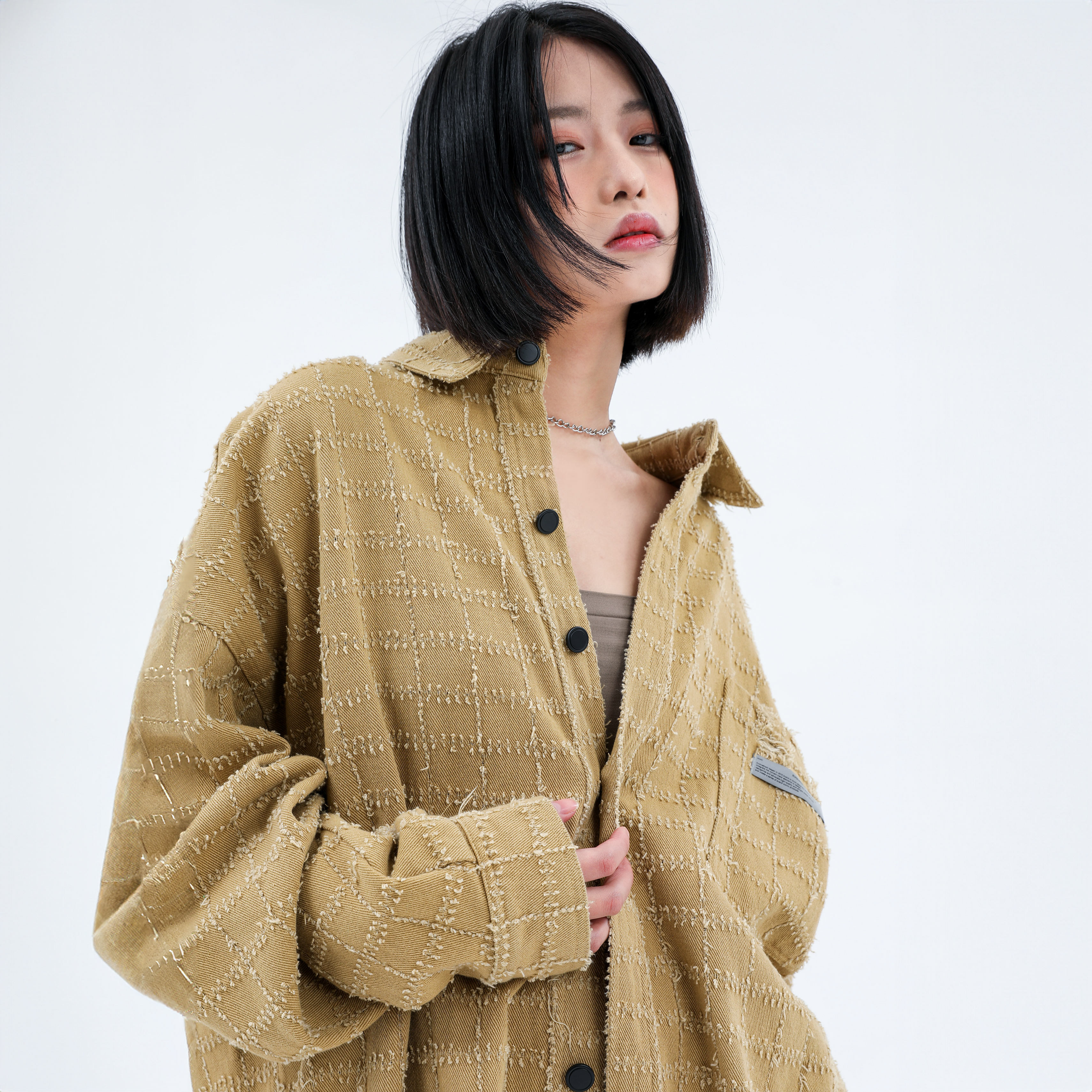 - Slightly fitted cut with straight design