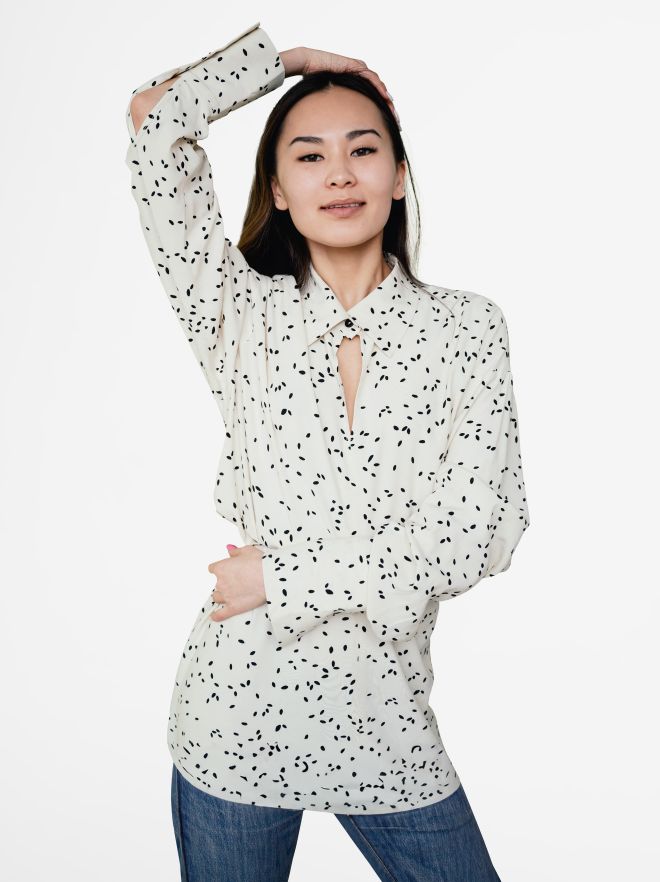 - Slightly fitted cut with straight design